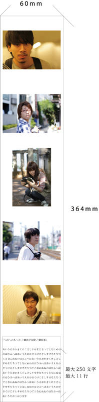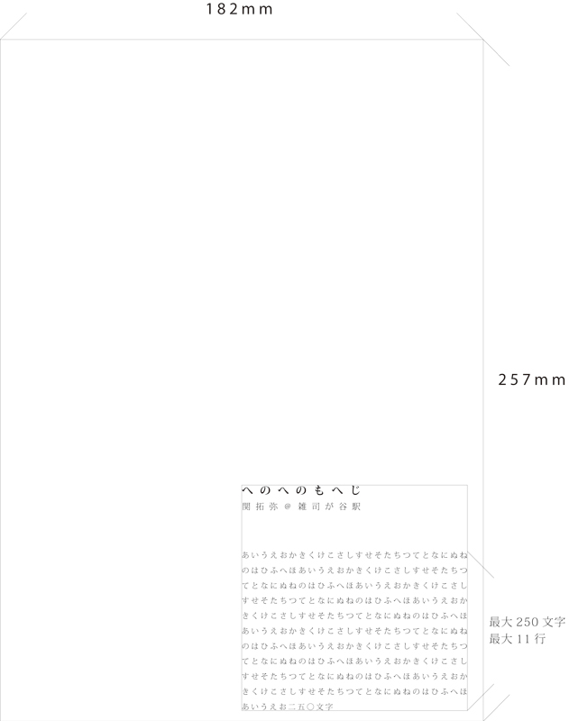 文章サイズ: 最大250文字、最大11行(読みやすいように文字間と行間の間隔は此方で個々に設定)